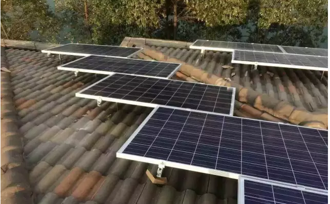 光伏居民發(fā)電系統(tǒng)由:支架、太陽能組件、并網(wǎng)逆變器、電源箱、光伏電表組成以下圖例