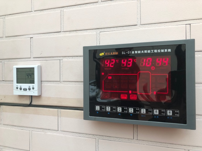 桑樂一以太陽能為主空氣源熱泵為輔的太陽能采暖工程的控制面板